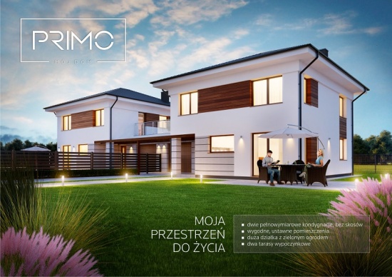 Oferujemy piękny dom jednorodzinny (dwukondygnacyjny) w zabudowie bliźniaczej - PRIMO - gotowy do oglądania!